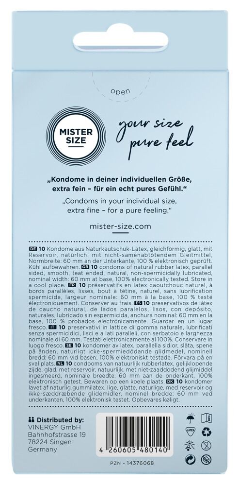 Mister Size XL tenký kondóm - 60mm (10ks)