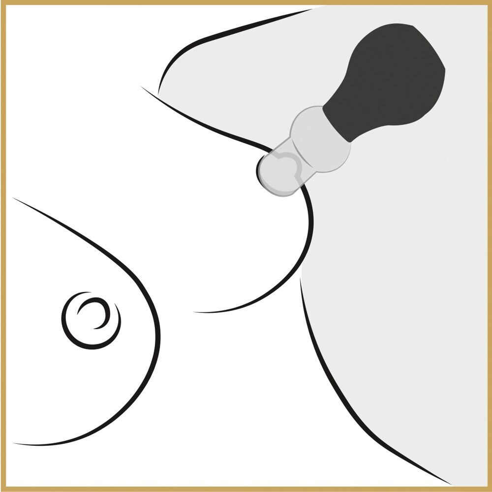 Prísavku stlačte prstami, priložte na bradavku a uvoľnite – vytvorí sa podtlak.